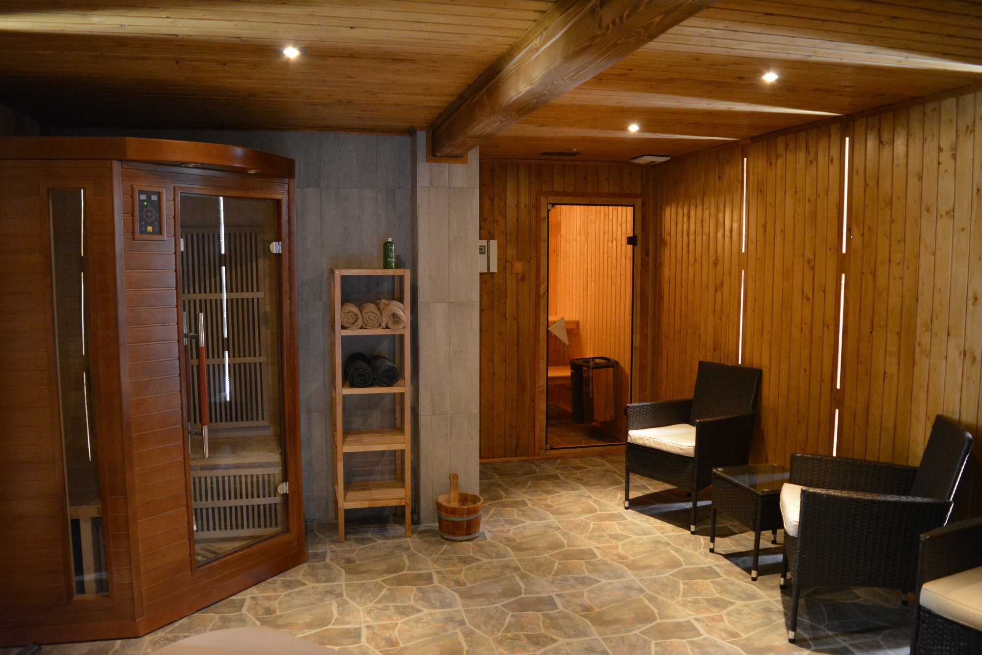 V případě nepřízni počasí je možné využít wellness (infrasauna, finská sauna, Kneippův chodník, masážní trysky… ) nebo velkou společenskou místnost s LCD – SAT, kachlovými kamny, 2 sedacími soupravami a kulečníkem. Přímo na chalupě je možnost zakoupení kvalitních moravských vín.